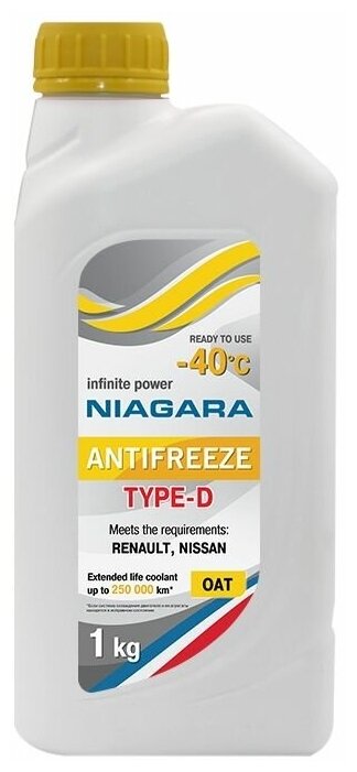Антифриз "Ниагара" желтый Type-D 40 (5 кг) рекомендован RENAULT-NISSAN и АвтоВАЗ информация:
