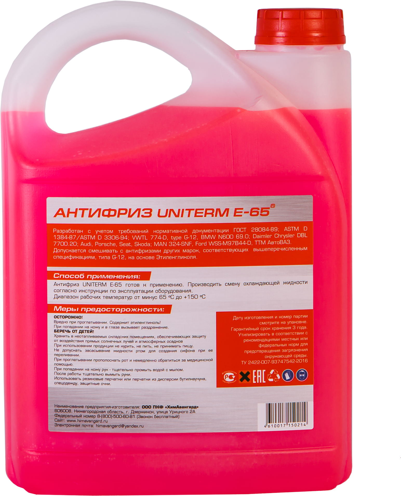 Антифриз UNITERM E-65 G-12 (красный, канистра 5кг) информация: