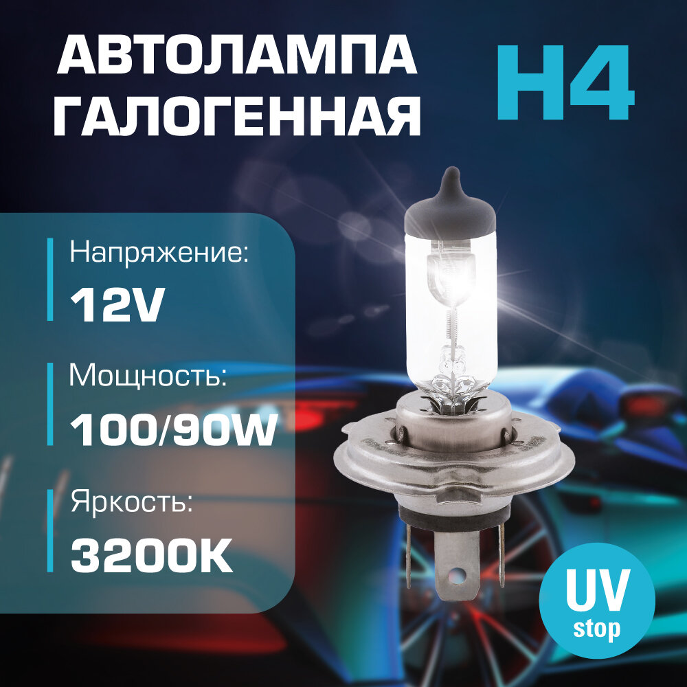 Автолампа H4 12v 100/90w (P43t)