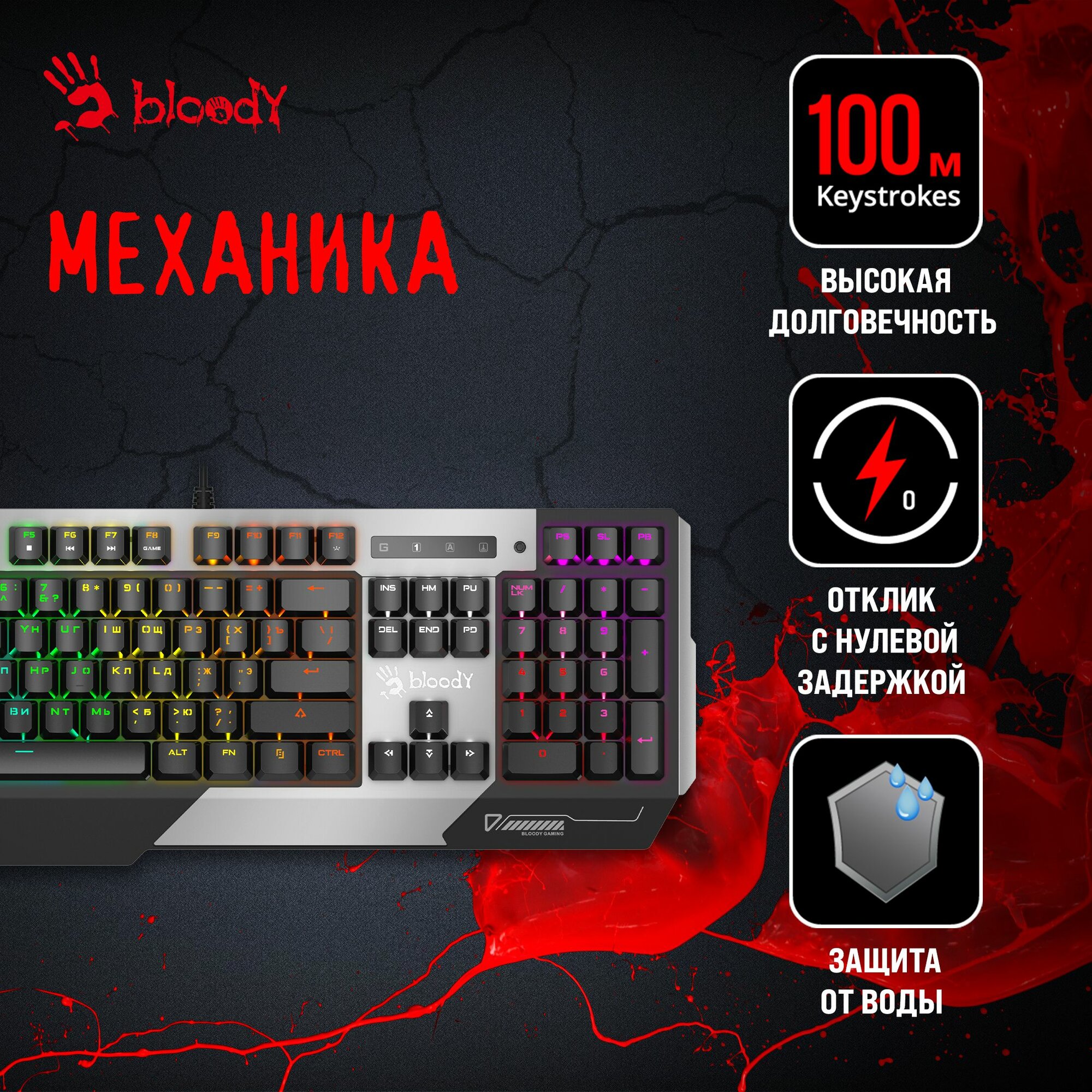 Клавиатура A4TECH Bloody B865R, USB, серый + черный
