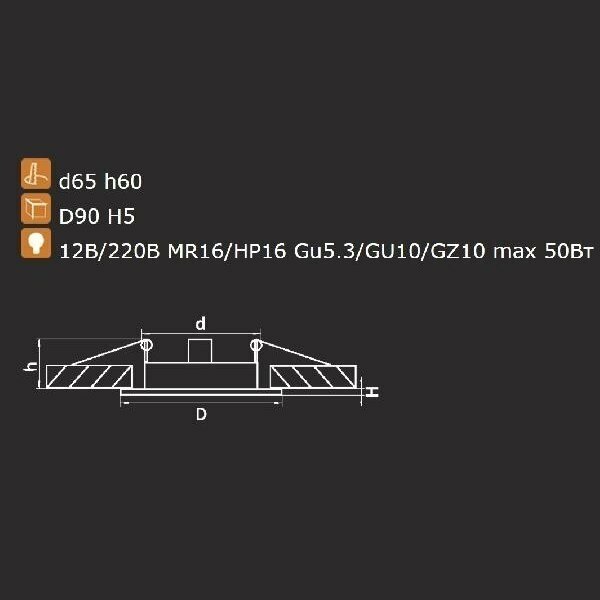 | Дополнительная информация | крепление пружинное; монтаж врезной; цоколь ламп Gu5.3, GU10, GZ10; типоразмер лампы MR16, HP16 |