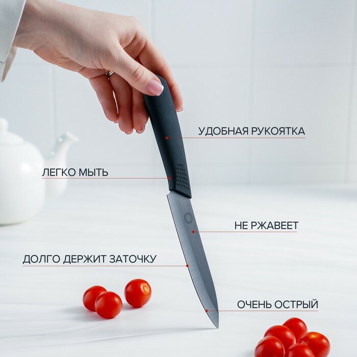 10 цен на Magistro Нож кухонный керамический Magistro Black, лезвие 12,5 см, ручка soft-touch, цвет чёрный