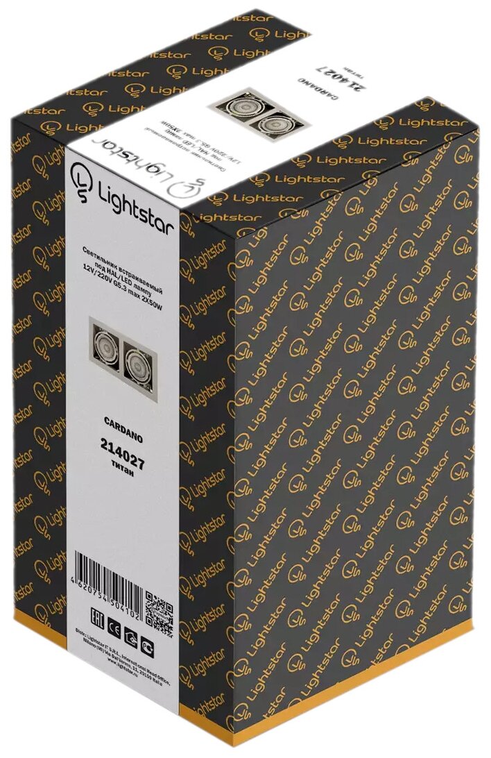 Встраиваемый светильник Lightstar Cardano 214027, GU5.3, 100Вт, кол-во ламп:2шт., Серый 3 301 ₽