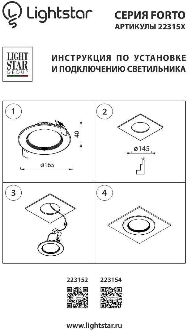 Встраиваемый светильник Lightstar Forto LED 223152