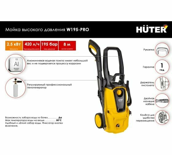 Мойка высокого давления HÜTER W195-PRO информация: