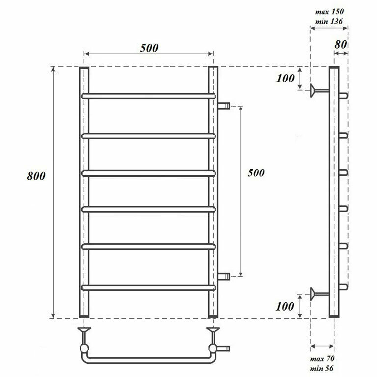 Водяной полотенцесушитель Point П6 50х80 PN08558 информация: