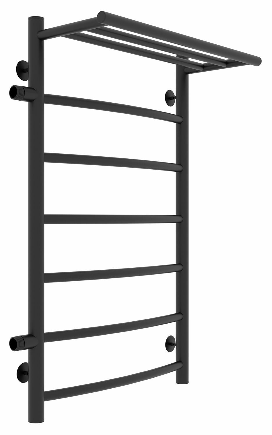 Полотенцесушитель водяной Laris Классик П7, 500х800 (L), мц 500, 1'', с полкой, черный матовый (73208025ЧМ) информация: