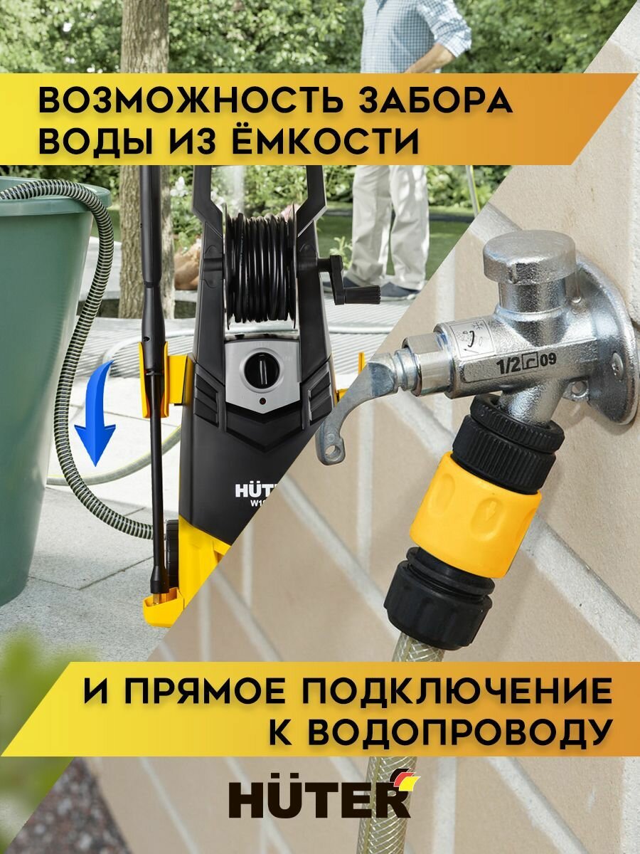 Мойка высокого давления, минимойка, Huter W195-QL (195 бар, 2500вт, с функцией самовсасывания)