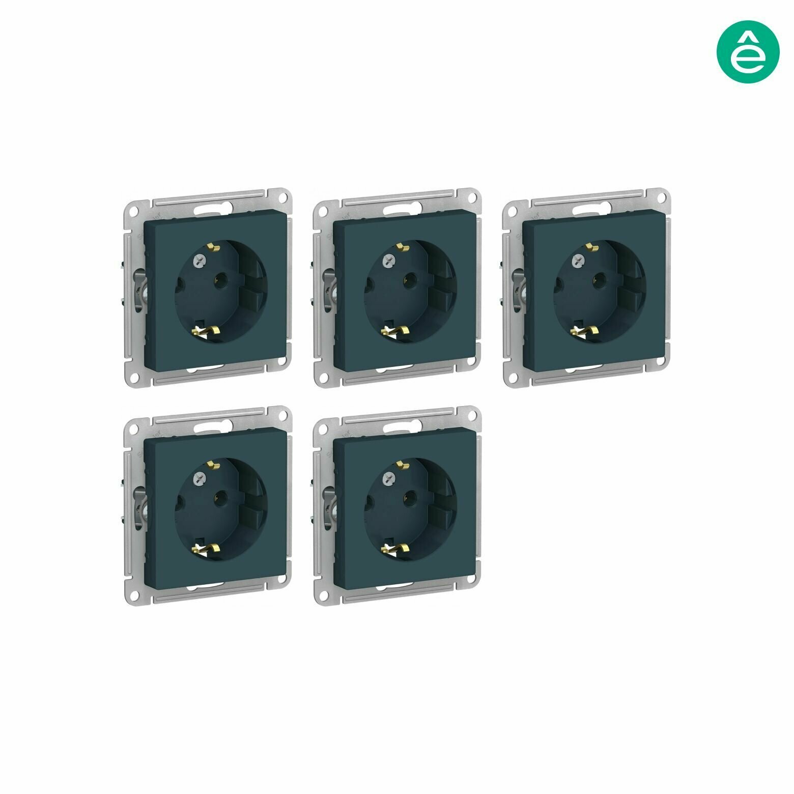 Розетка с заземлением Systeme Electric Atlasdesign 16А, механизм с заземлением, комплект 5 шт, аквамарин, ATN001143/5 1 909 ₽
