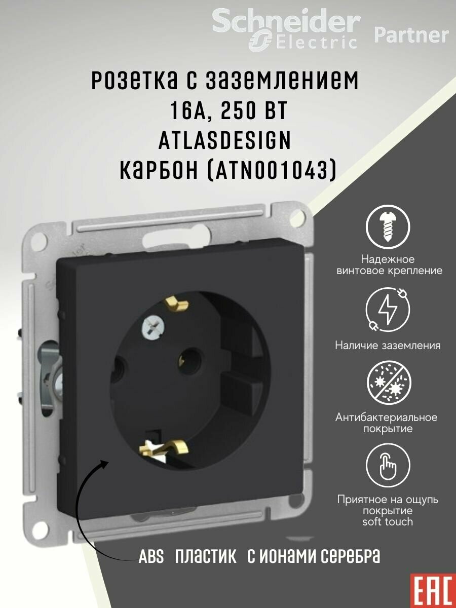 Розетка карбон AtlasDesign с заземлением ATN001043 Schneider Electric / Systeme Electric 10шт информация: