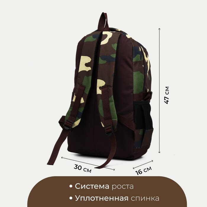 Зфтс Рюкзак туристический, 22 л, 2 отдела на молниях, 5 наружных карманов, цвет камуфляж/хаки информация: