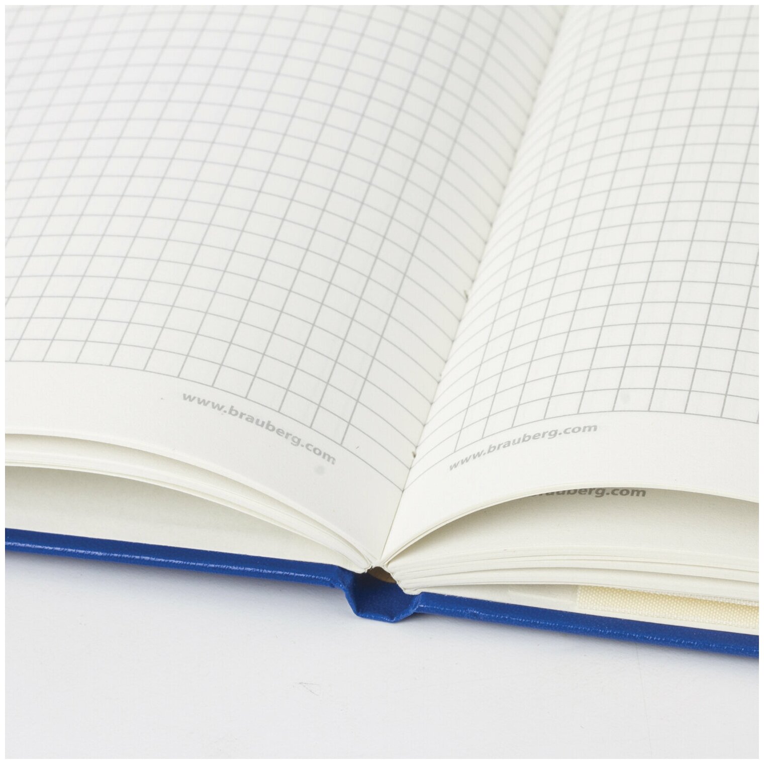 Блокнот А5 (148×218 мм), BRAUBERG «Metropolis», балакрон, 80 л., резинка, клетка, синий, 111582