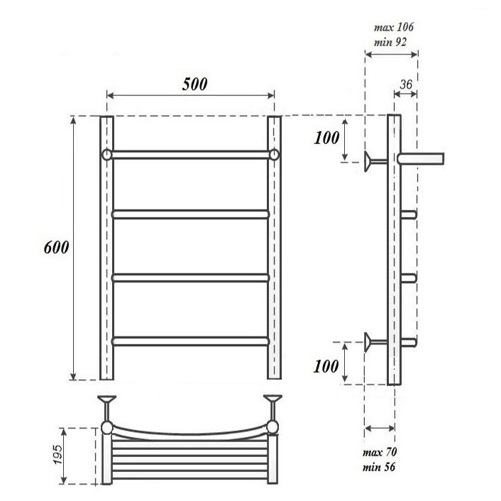 Водяной полотенцесушитель Point П3 50х60 PN04156P информация: