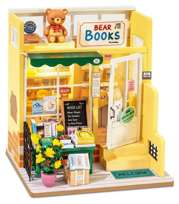 10 цен на 3D деревянный конструктор Robotime Миниатюрный дом - Деревянный конструктор Румбокс - Книжный магазин DG152
