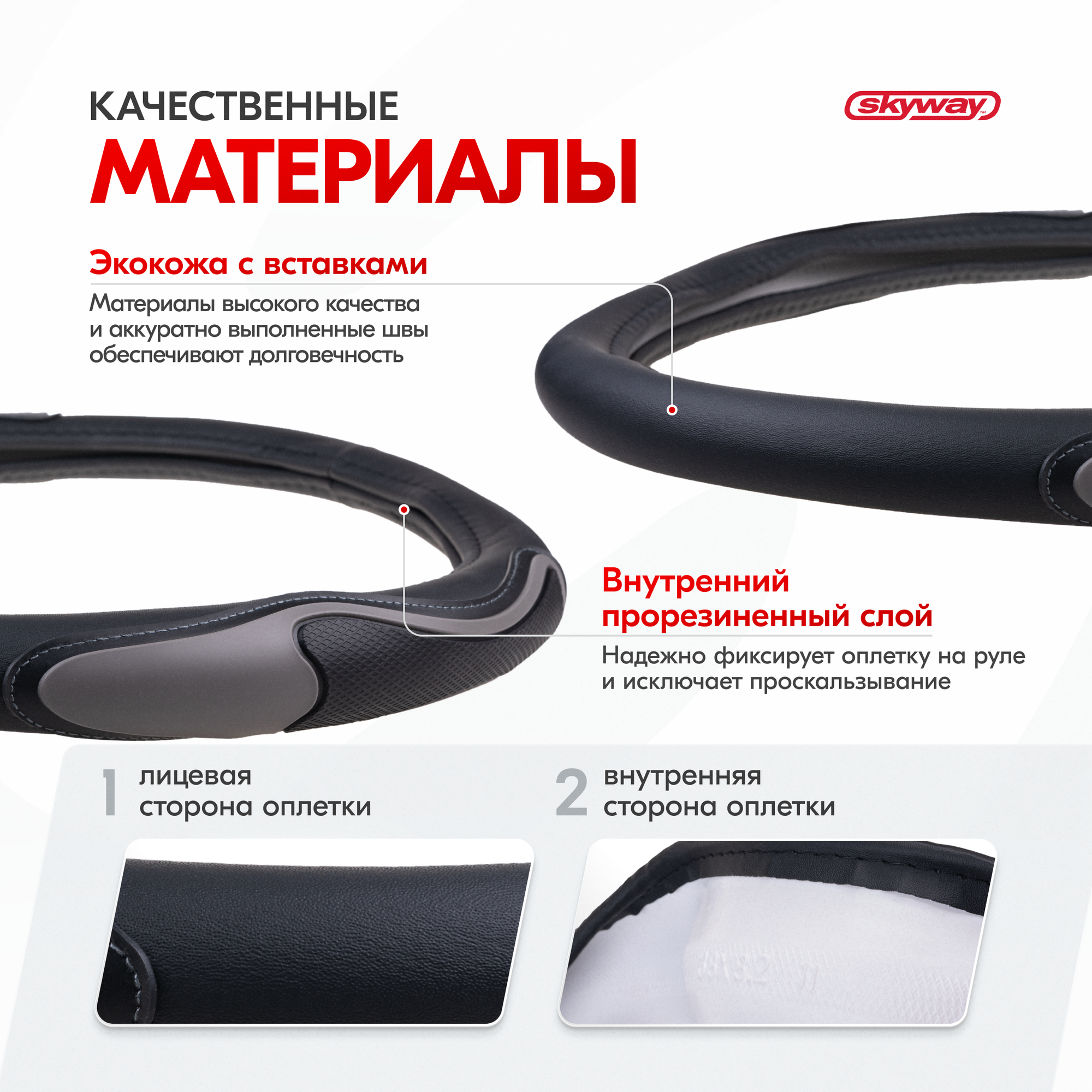 Оплетка руля M Skyway Eco Combo 13 экокожа черно-серая SKYWAY S01102476 | цена за 1 шт 920 ₽