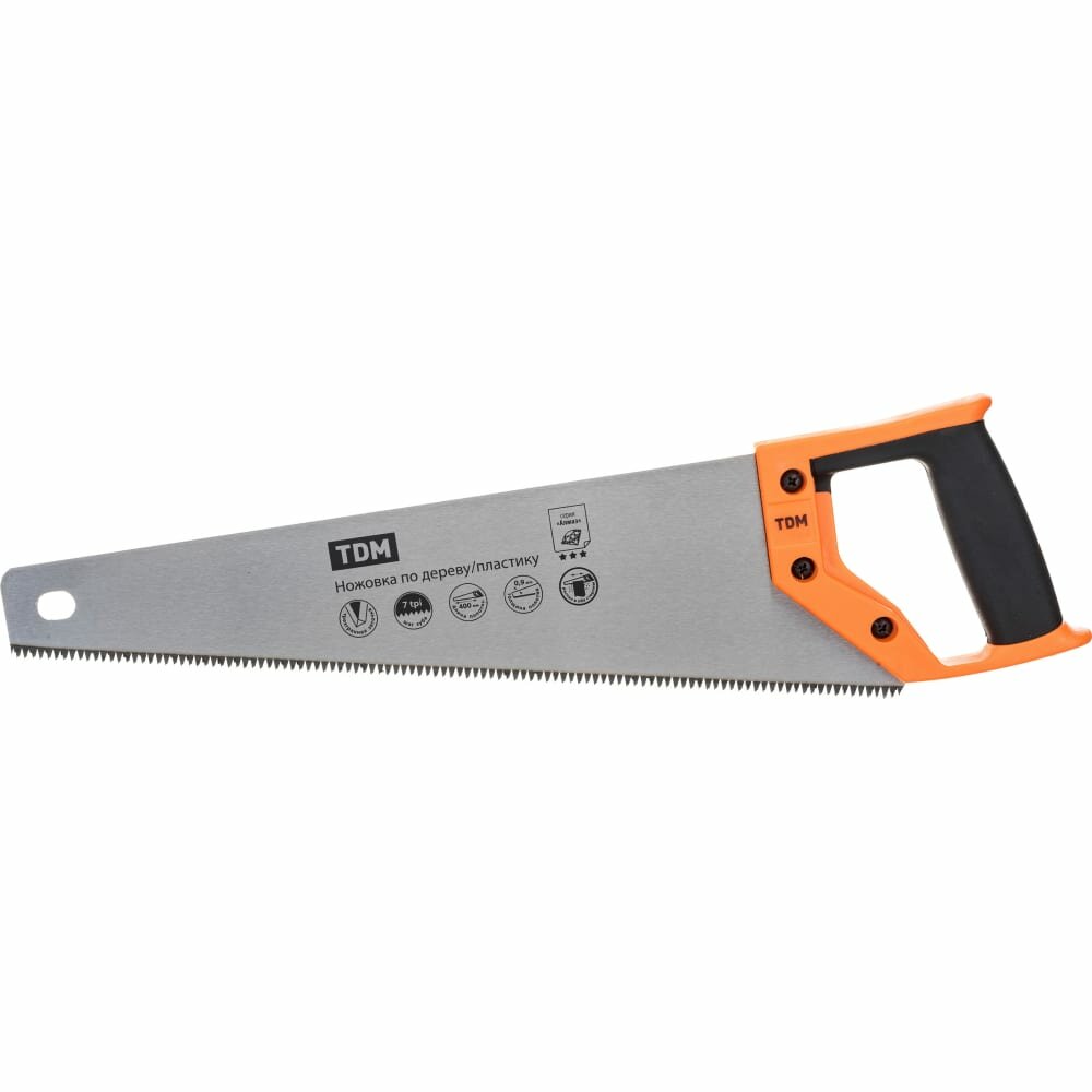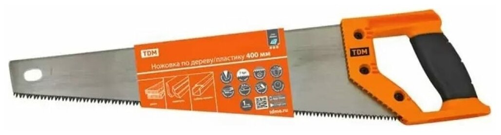 Ножовка по дереву и пластику TDM Алмаз 400 мм, закаленные зубья, прорезиненная рукоятка SQ1035-0102