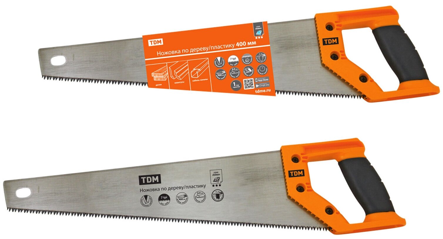 TDM Ножовка по дереву/пластику 400 мм, закаленные зубья, прорезиненная рукоятка, Алмаз, SQ1035-0102