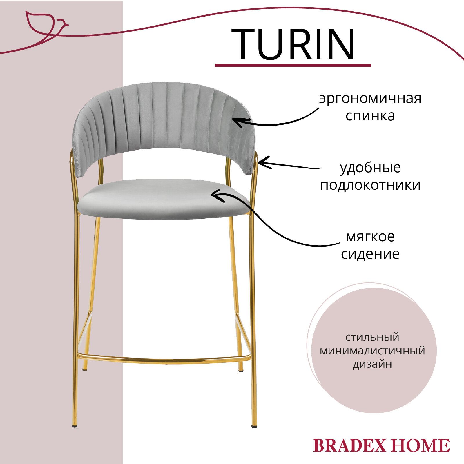 Стул полубарный Bradex Home Turin серый с золотыми ножками