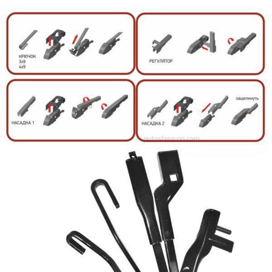 10 цен на SKYWAY S02701011 Щетка стеклоочистителя 580 бескаркасная универсальный адаптер 58см/23"; SKYWAY