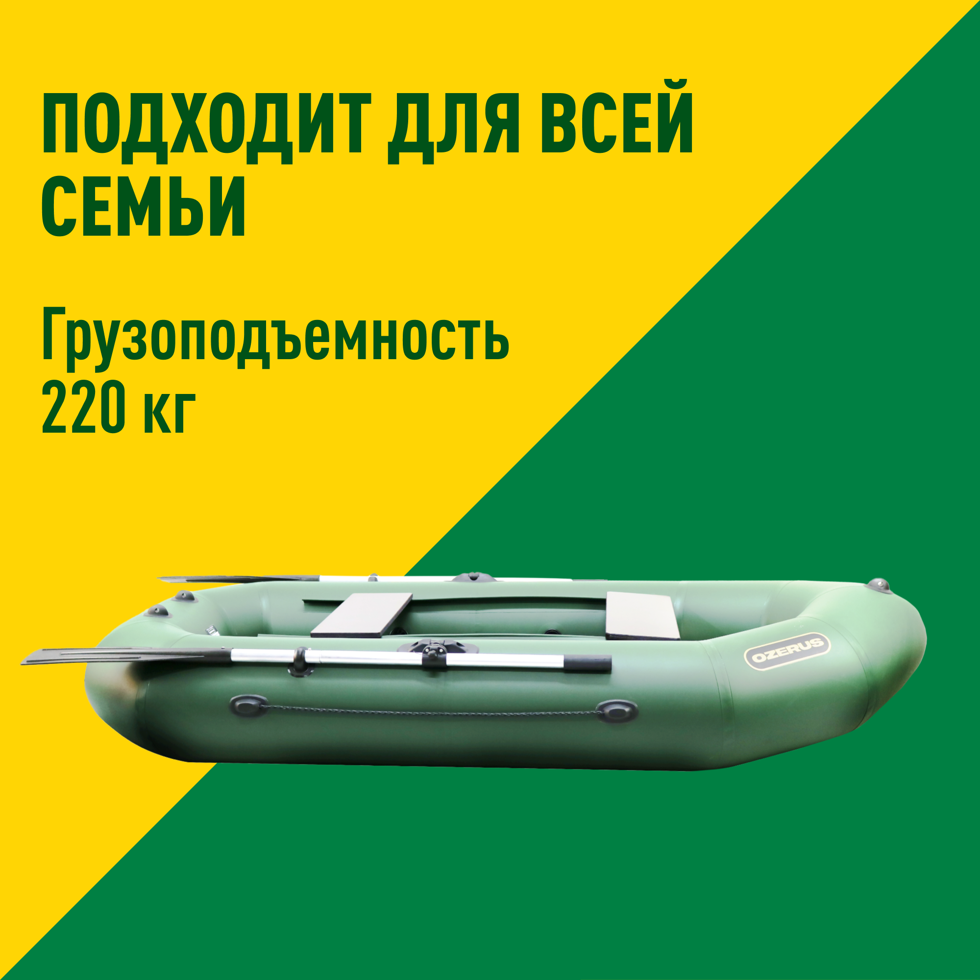 Отзывы на Лодка надувная для рыбалки ПВХ Озерус OZERUS 240 двухместная гребная, крепления для транца под мотор, зеленая