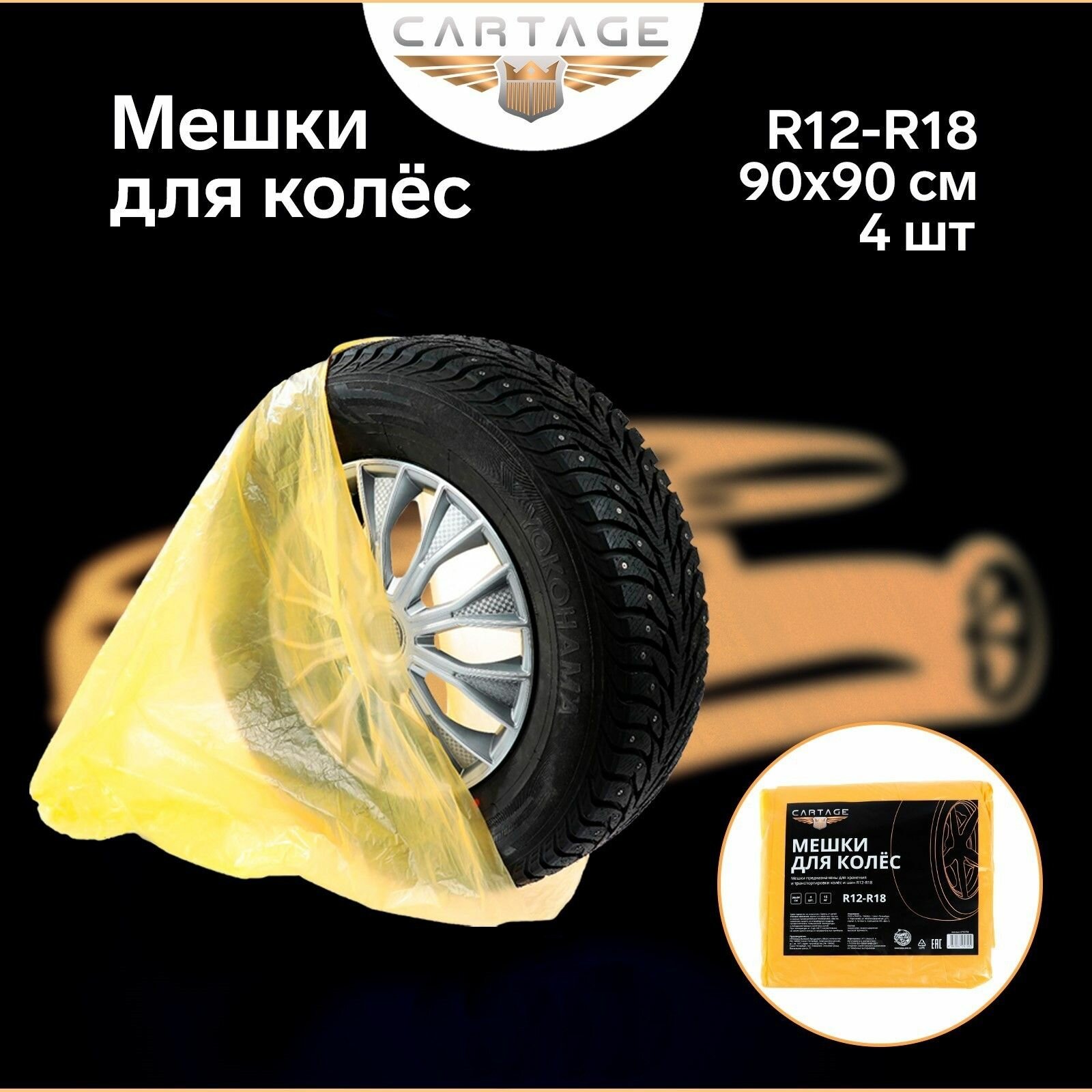 Мешки для колес Cartage, R12-R18, 90х90 см, набор 4 шт информация: