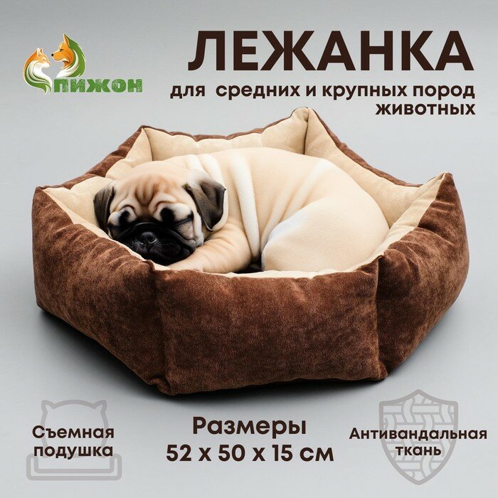 Лежанка шестиугольная, 52 х 50 х 15 см, микровельвет, микс информация: