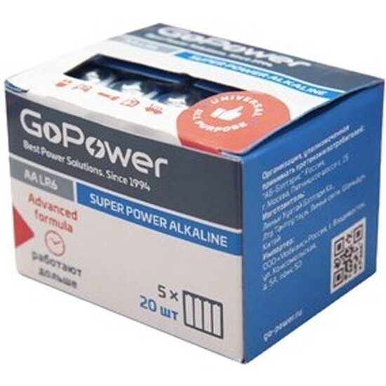 Батарея GoPower AA (LR06/15А), 1.5V, 20 шт 890 ₽