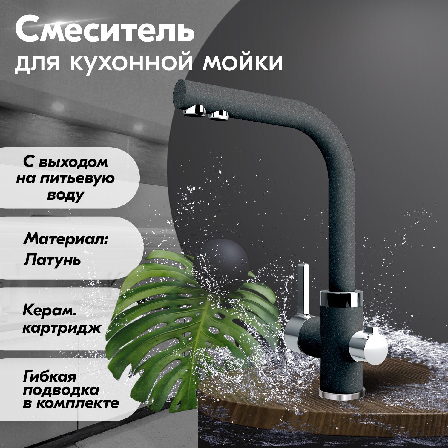 Смеситель для кухни Dr.Gans Акцент Черный 9 930 ₽