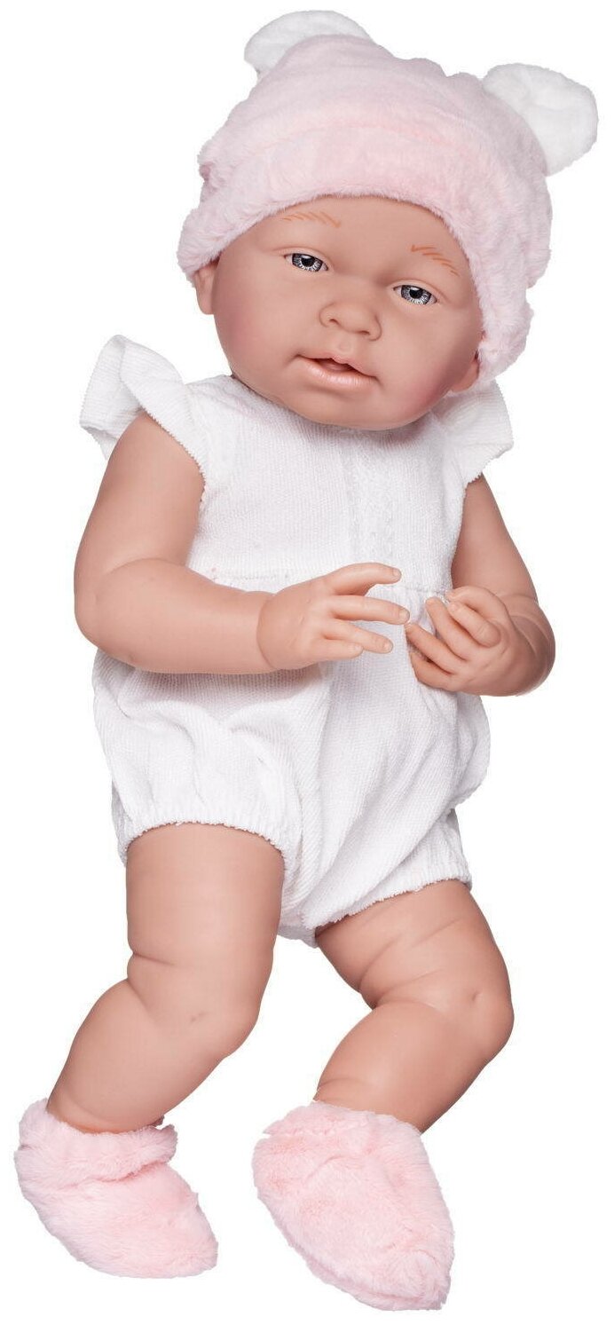 Отзывы на Пупс Junfa Pure Baby в белом с оборками боди, розовых пинетках и шапочке с плюшевым белым медвежонком, с аксессуарами, 40см WJ-22525