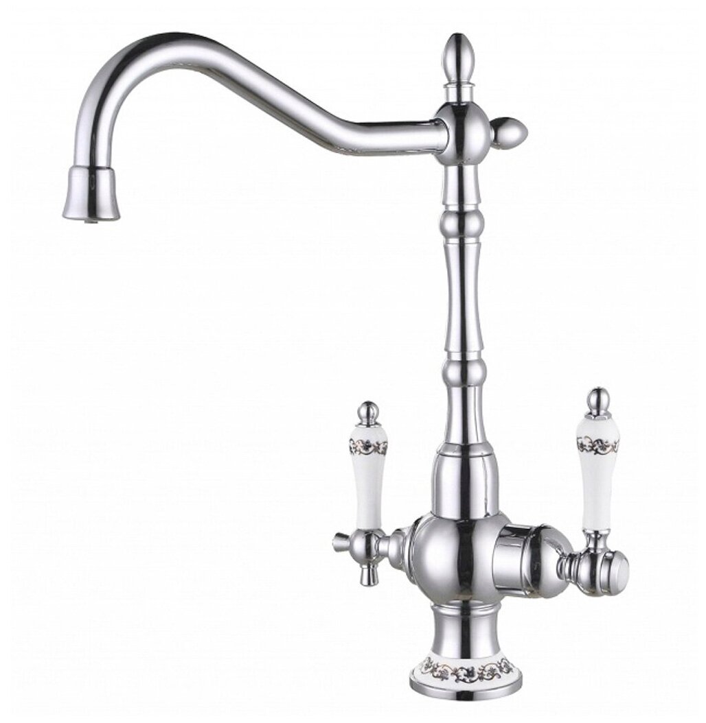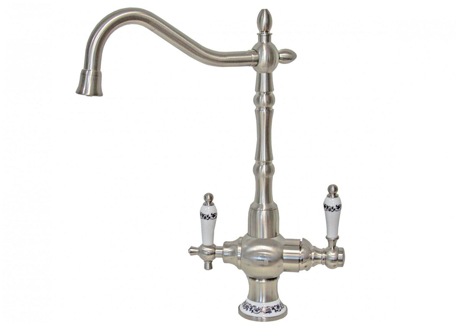 Смеситель для кухни под фильтр ZorG ZR 336 YF-50 SATIN, сатин никель матовый, ручки керамика с орнаментом, ретро, премиум
