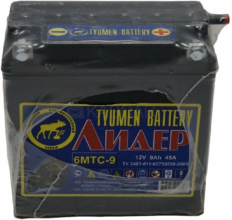 Аккумулятор мото Tyumen Battery Лидер 9 а/ч 45А под болт Обратная полярность