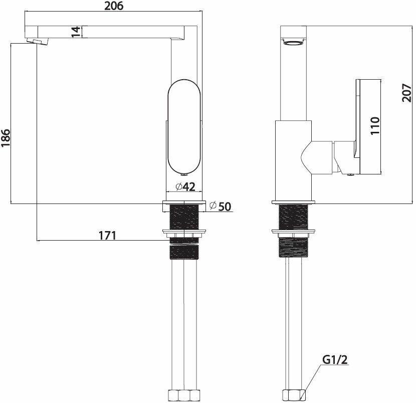 | Высота излива | 186 мм / 207 мм |