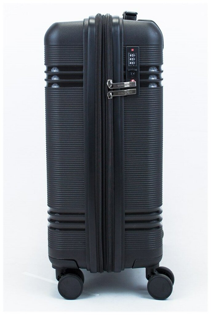 Чемодан Sweetbags маленький (ручная кладь) из полипропилена с расширением на 4-х колесах с TSA замком (мелкие полосы) черный S информация: