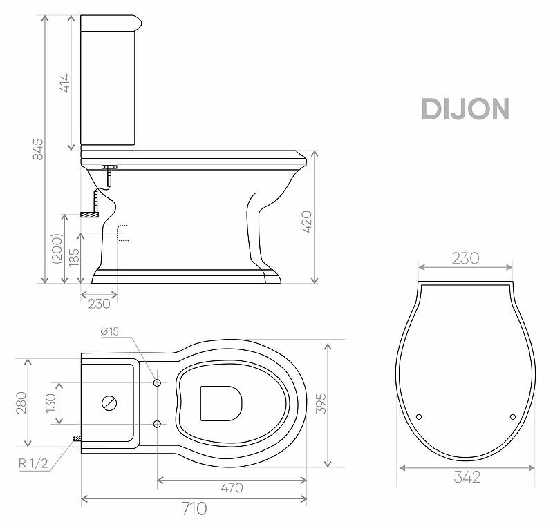 Унитаз-компакт напольный CREO DIJON (DI1003+DI1001N+DI1002) с горизонтальным сливом информация: