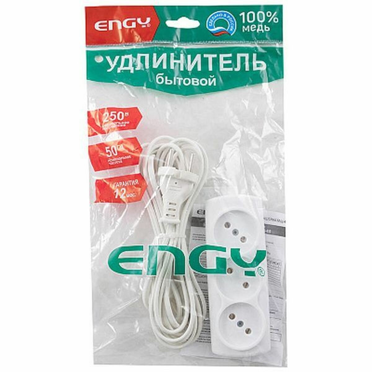 Удлинитель Engy Эконом, ШВВП 2 x 0,75 мм, 3 розетки, 5 м, белый информация: