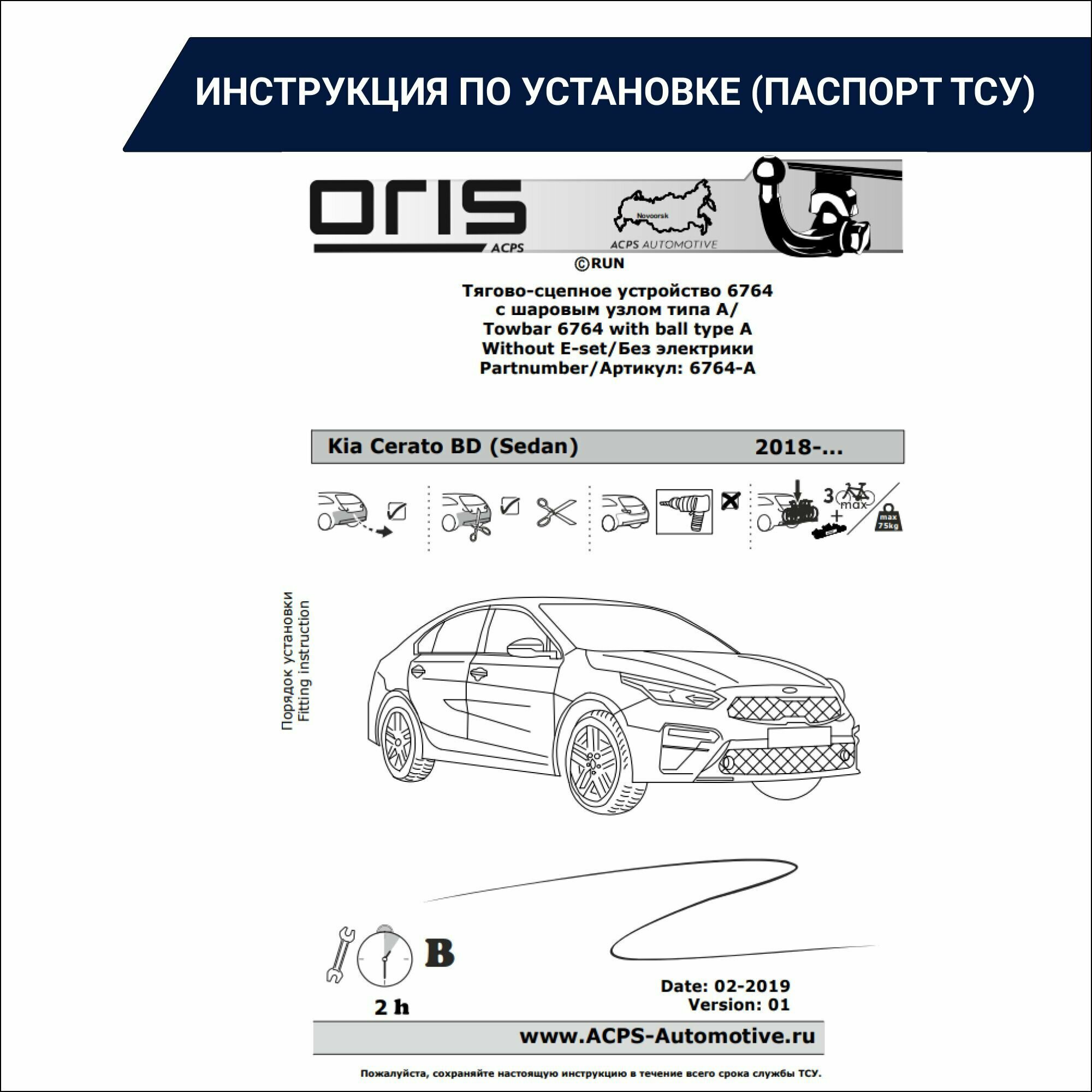 Фаркоп Oris / Bosal ТСУ для KIA Cerato (2018 - ) АРТ. 6764-A информация: