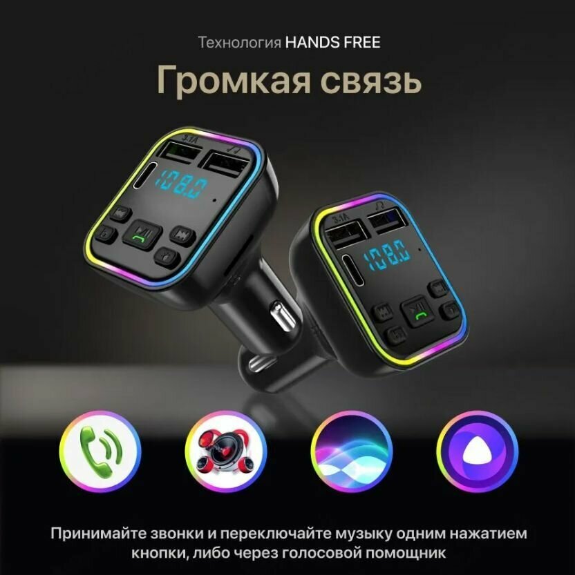 Орбита / TS-CAF120 FM-трансмиттер с bluetooth/микрофоном/ для автомобиля/ зарядник QC 3.0 для авто в прикуриватель