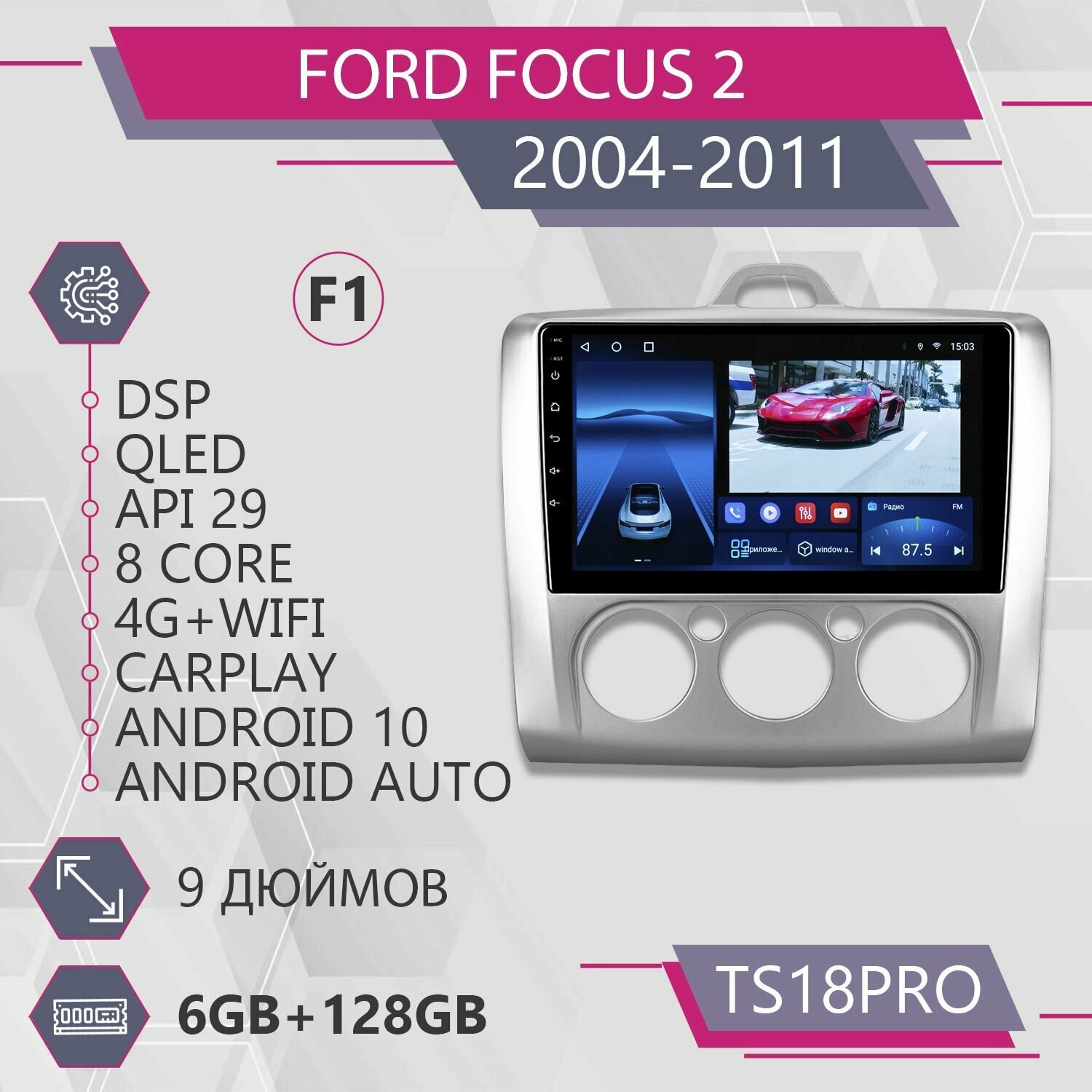 Штатная автомагнитола TS18Pro/ 6+128GB/для Ford Focus 2 F1/ Форд Фокус 2/ Под Кондиционер/ магнитола Android 10/2din/ головное устройство/ мультимедиа информация: