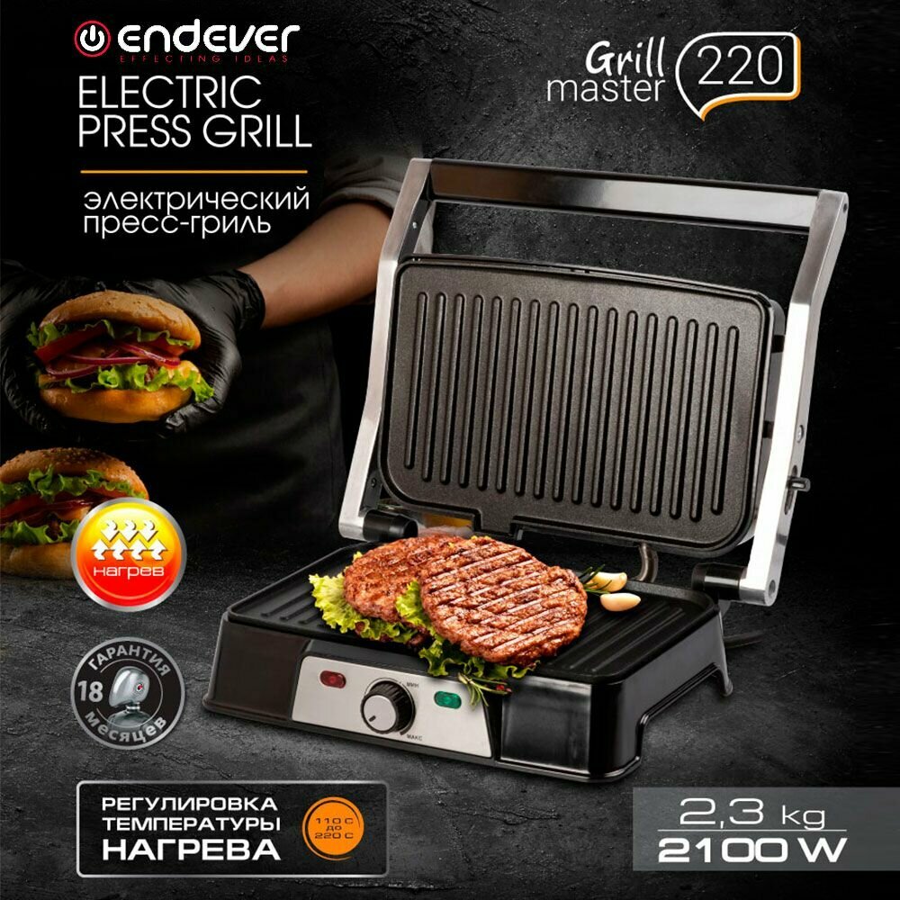 Электрогриль ENDEVER Grillmaster 220, серебристый и черный [80370]