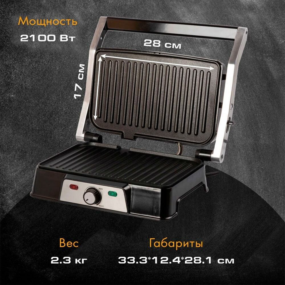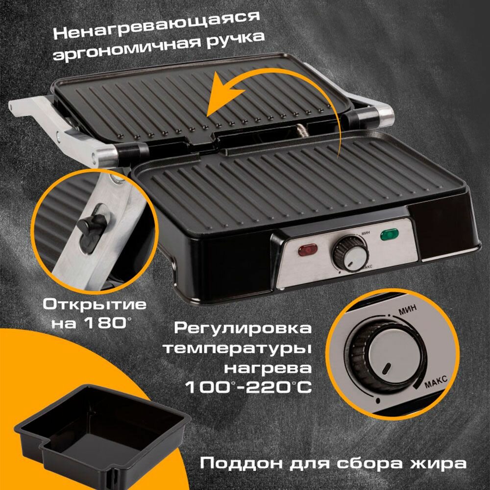 Гриль электрический Endever Grillmaster-220 / 2100 Вт / до 220 градусов / антипригарное покрытие / электрогриль с антипригарным покрытием