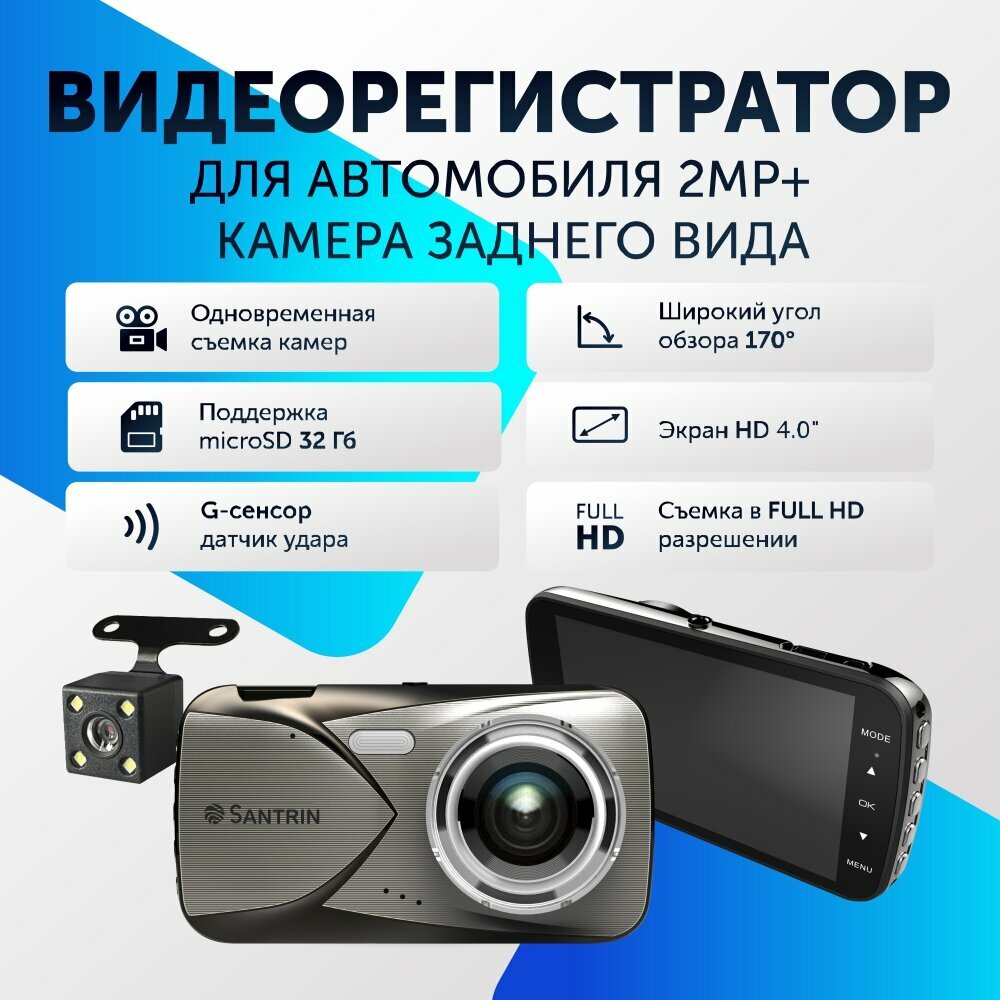 10 цен на Видеорегистратор автомобильный с камерой заднего вида 2 Mpix 1080P / G-Sensor /Камера заднего вида для парковки/запись звука