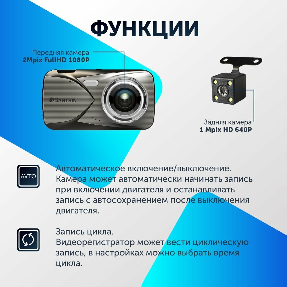 Видеорегистратор автомобильный с камерой заднего вида 2 Mpix 1080P / G-Sensor /Камера заднего вида для парковки/запись звука информация: