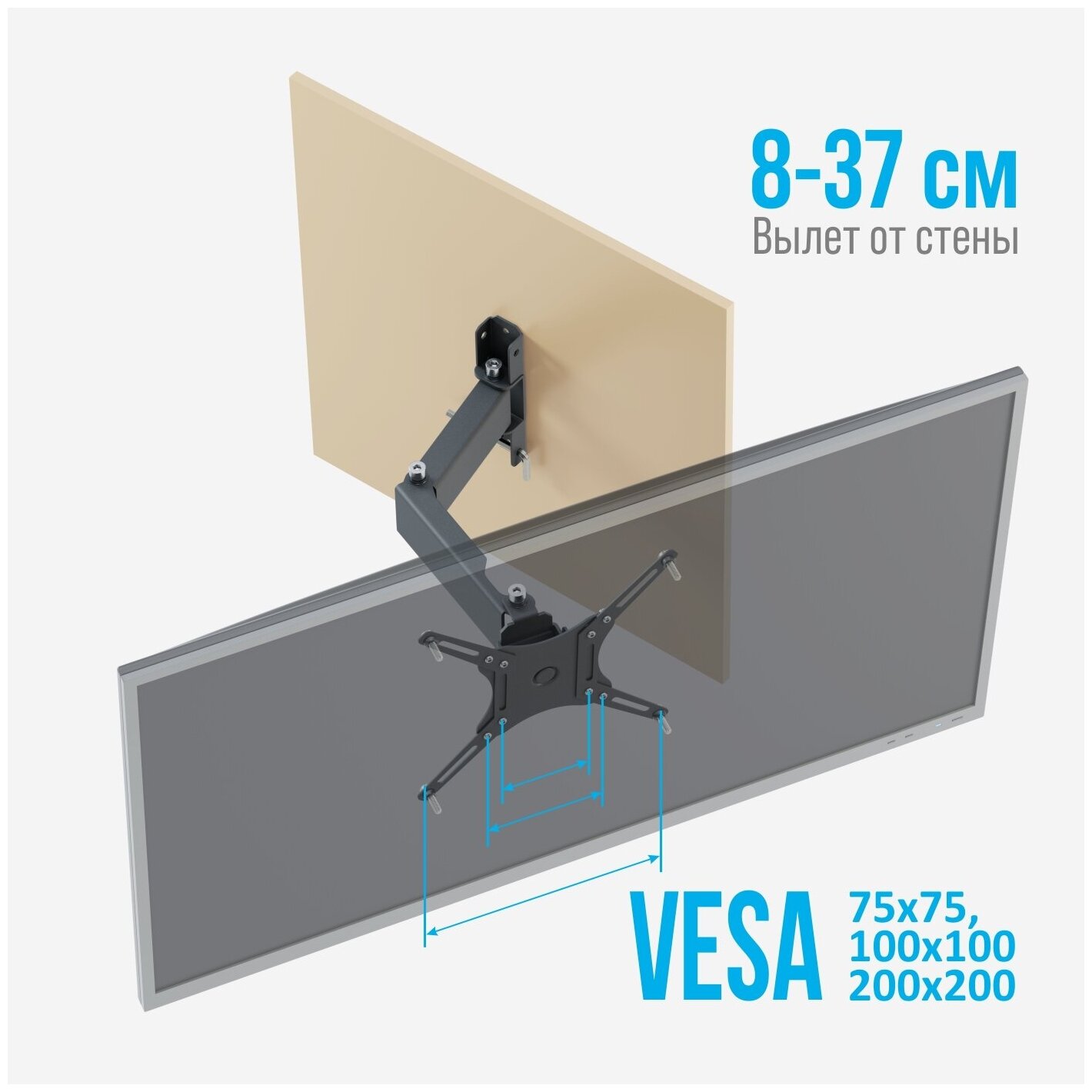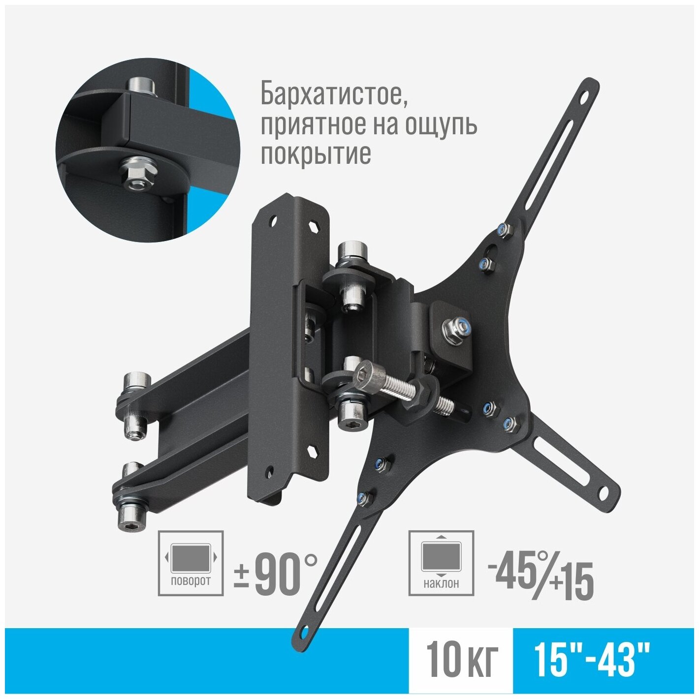 Надежный настенный кронштейн РЭМО K-543, наклонно-поворотный 15"-43", крепление VESA 75*75, 100*100 и 200*200 мм