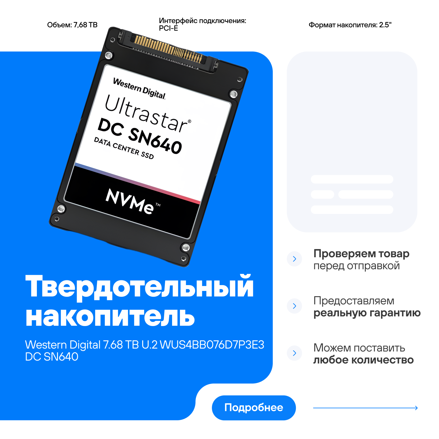 Твердотельный накопитель Western Digital 7.6 ТБ U.2 WUS4BB076D7P3E3 информация: