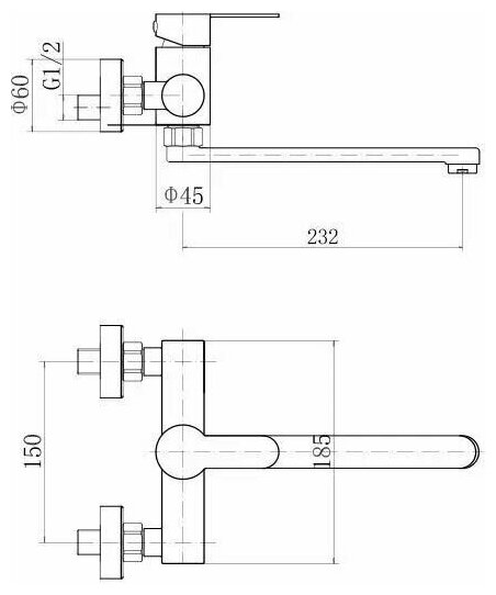 Смеситель на раковину настенный Эверест B46-350 с круглым поворотным изливом, кран-буксы 1/2", хром