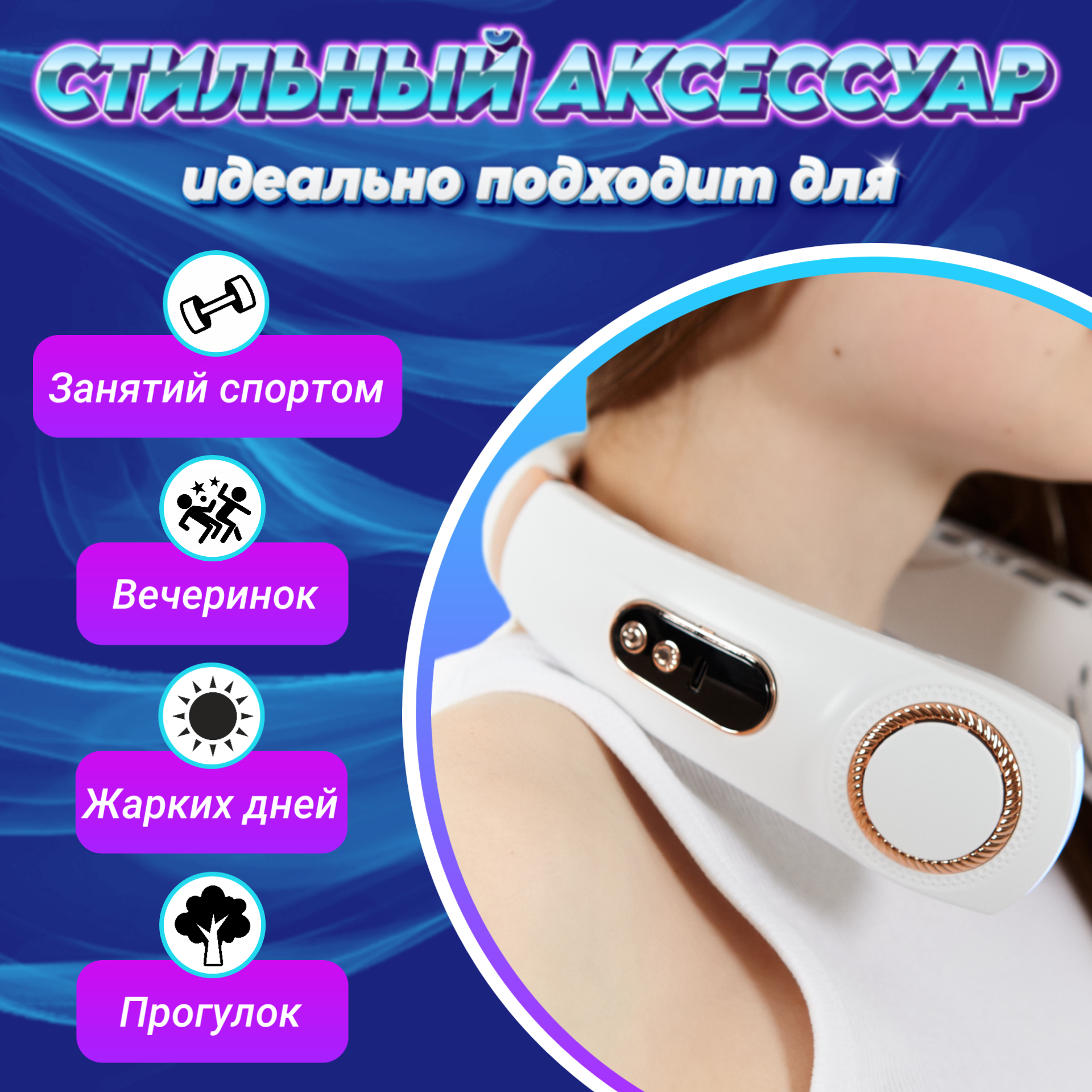 10 цен на Нашейный портативный вентилятор с подсветкой, белый
