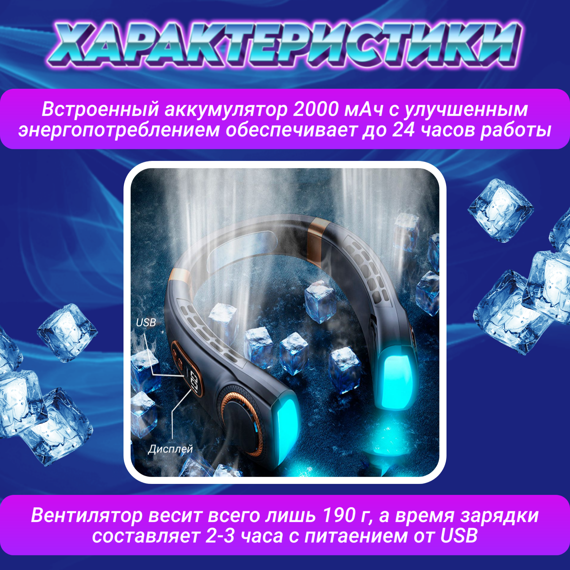 Нашейный портативный вентилятор с подсветкой, черный информация:
