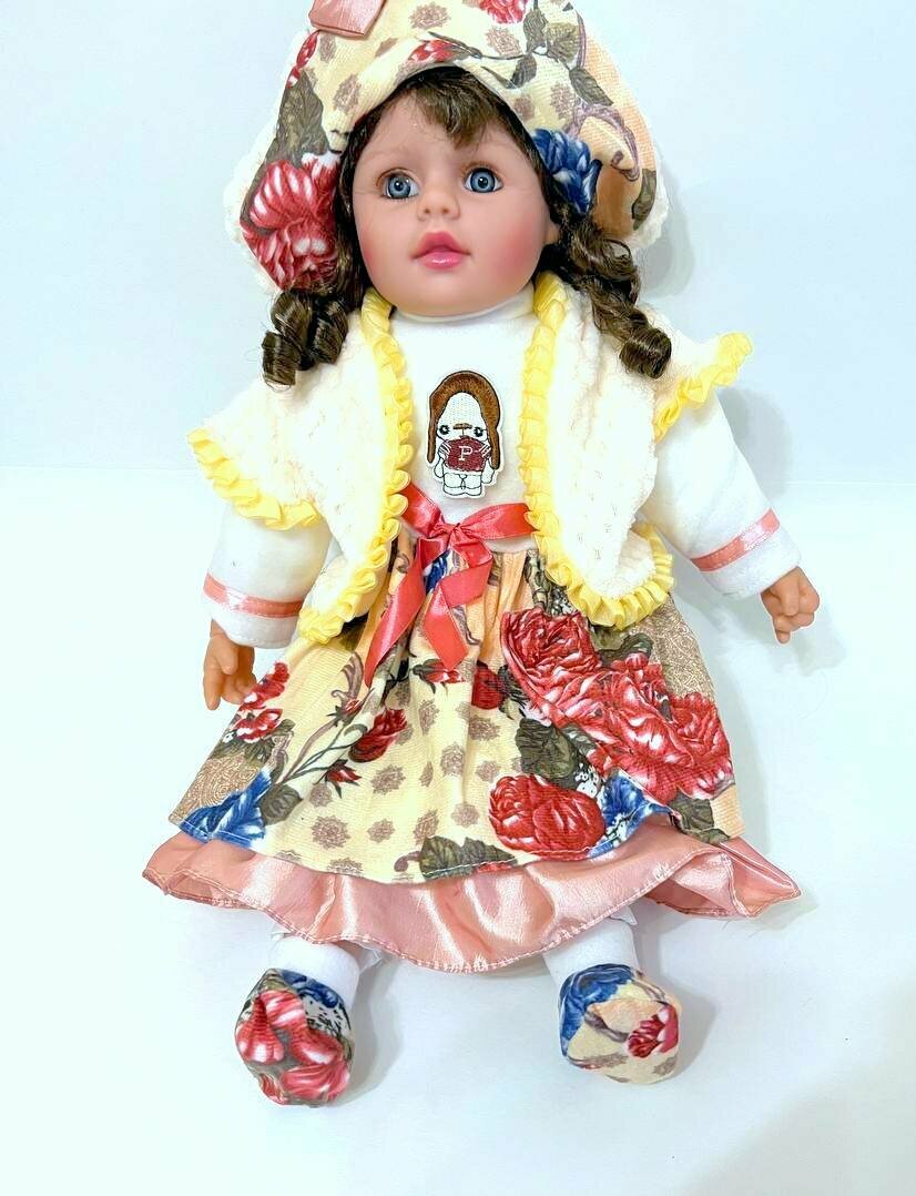 Большая кукла 60 см в бежевой кружевной курточке, интерактивная в подарочной упаковке, в свитере, говорит