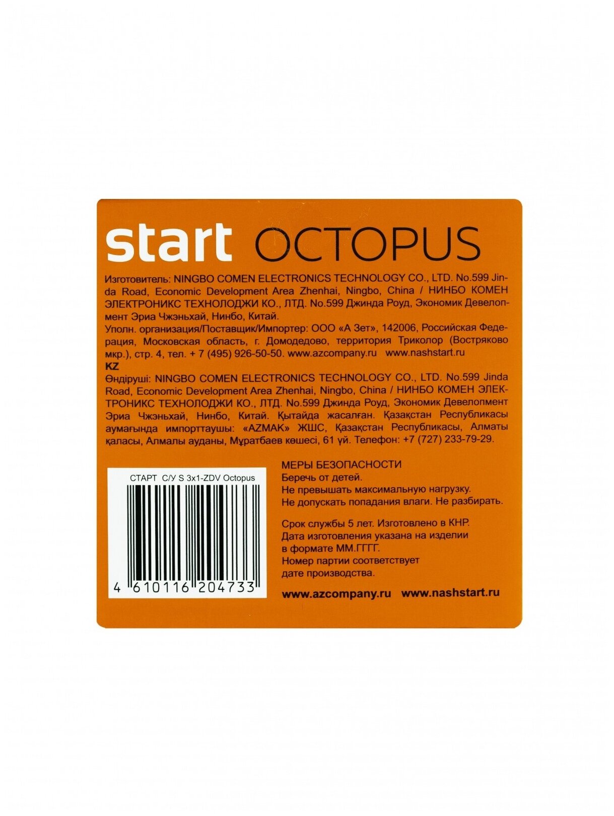 10 цен на Удлинитель старт (С/У S 3x1-ZDV) Octopus/3 розетки/1.4м/3500Вт/16А/250В