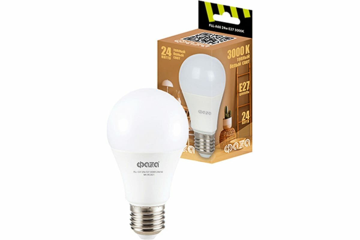 Лампа светодиодная E27, 24 Вт, 230 В, 3000 К, свет теплый белый, ФАZА, FLL- A60 информация: